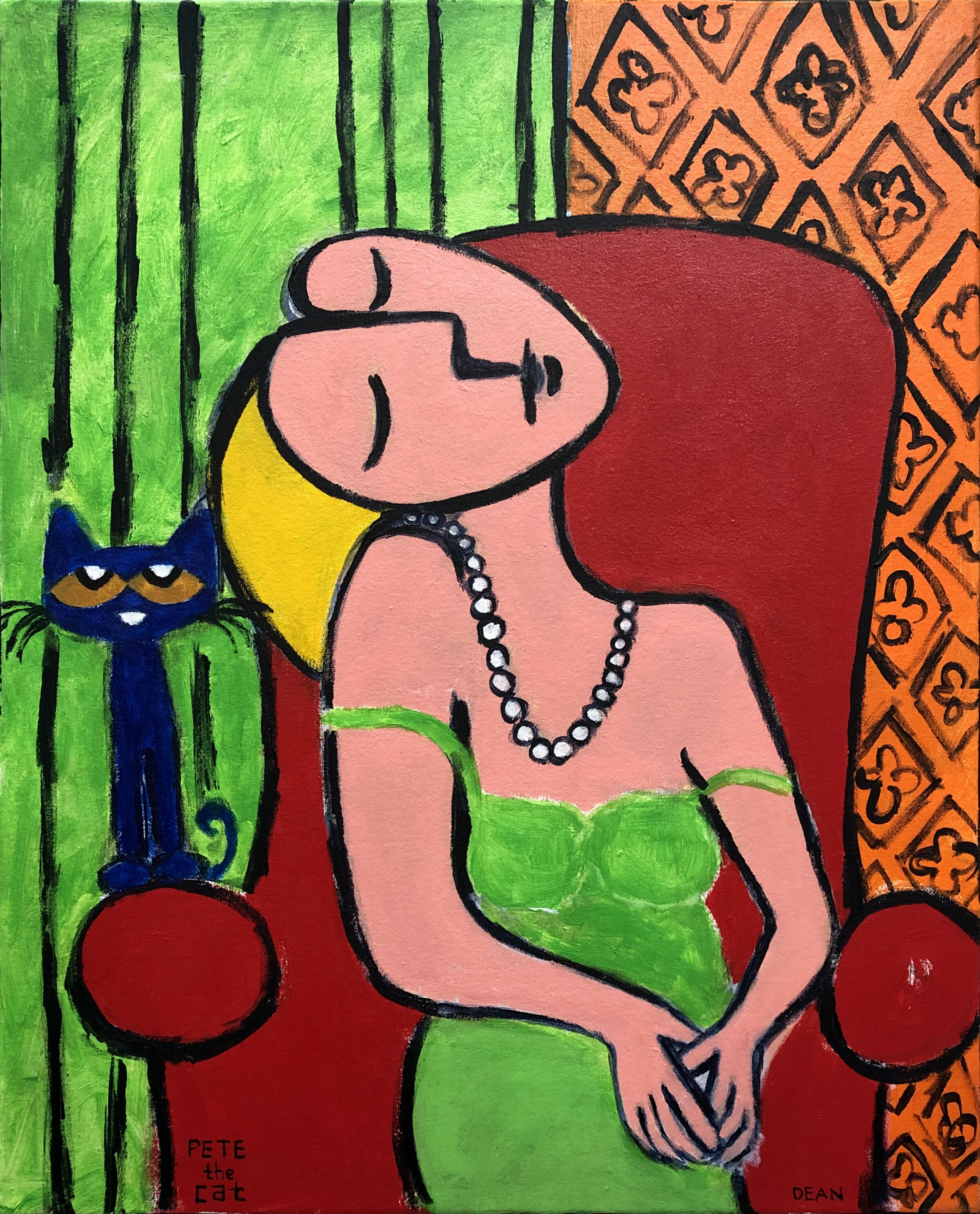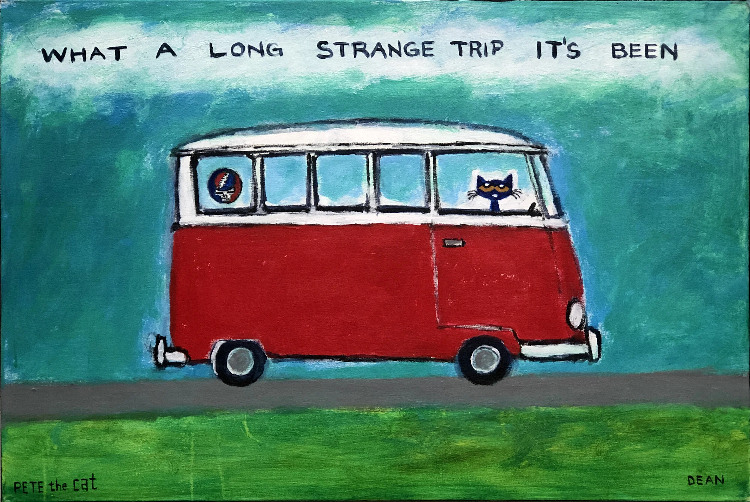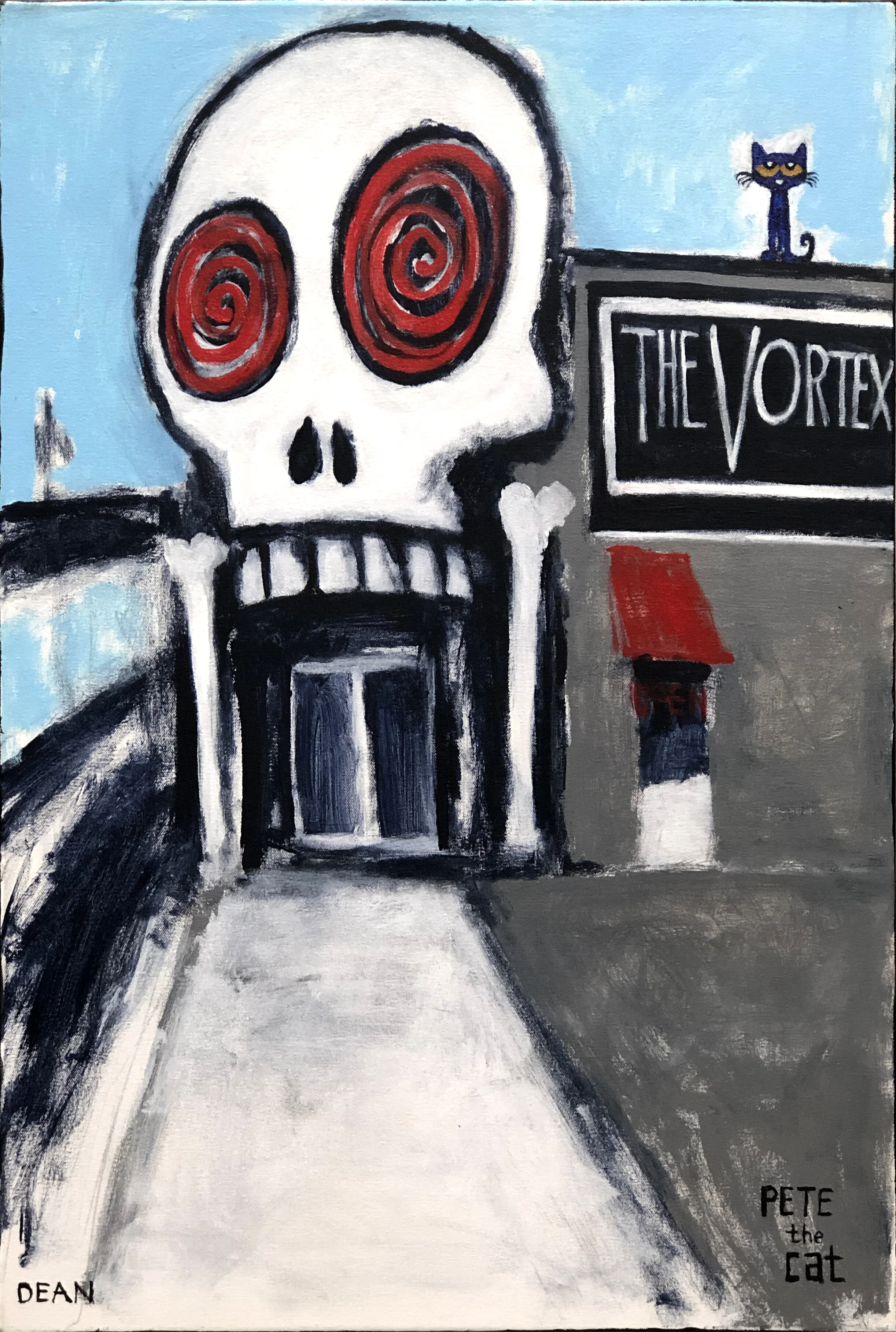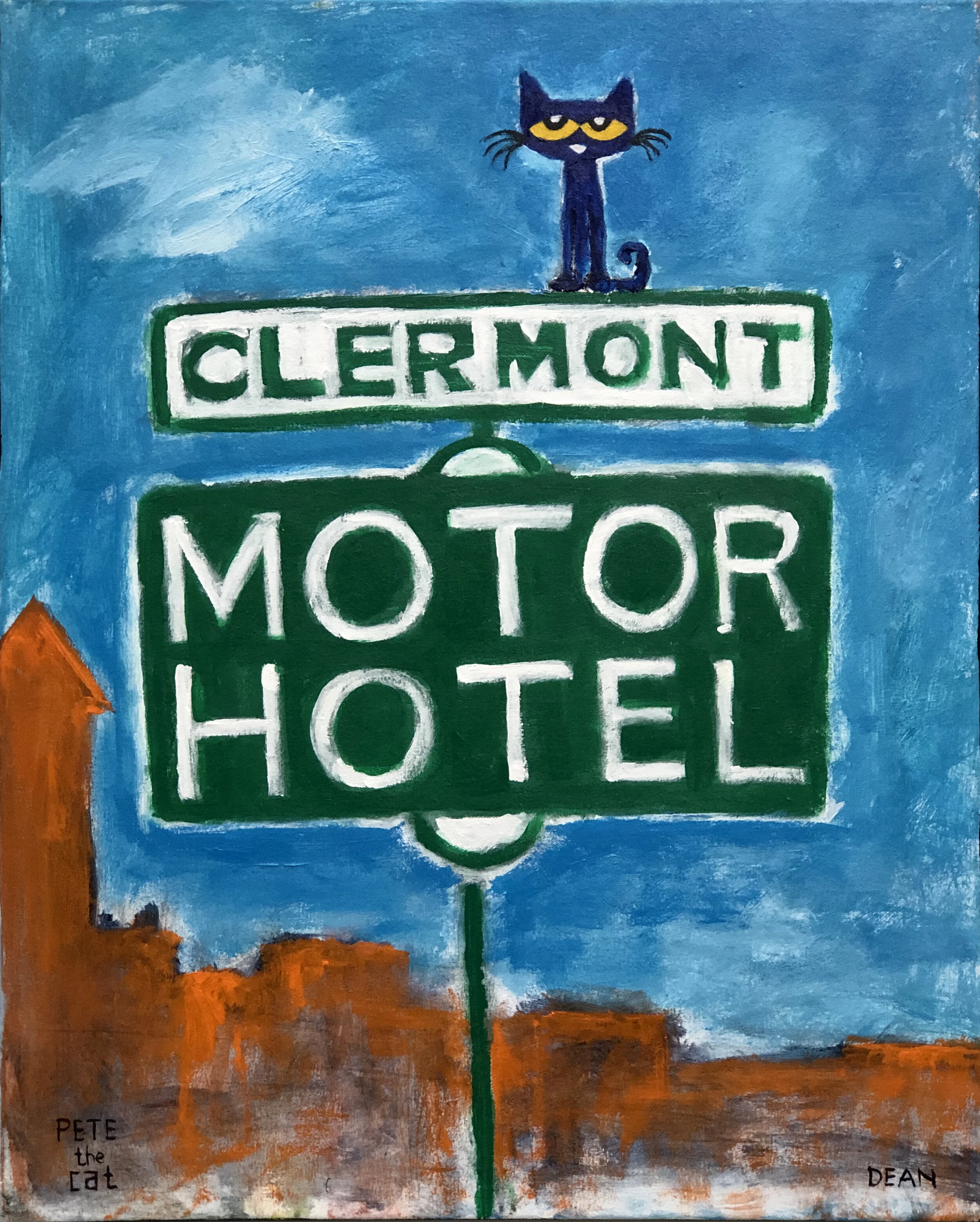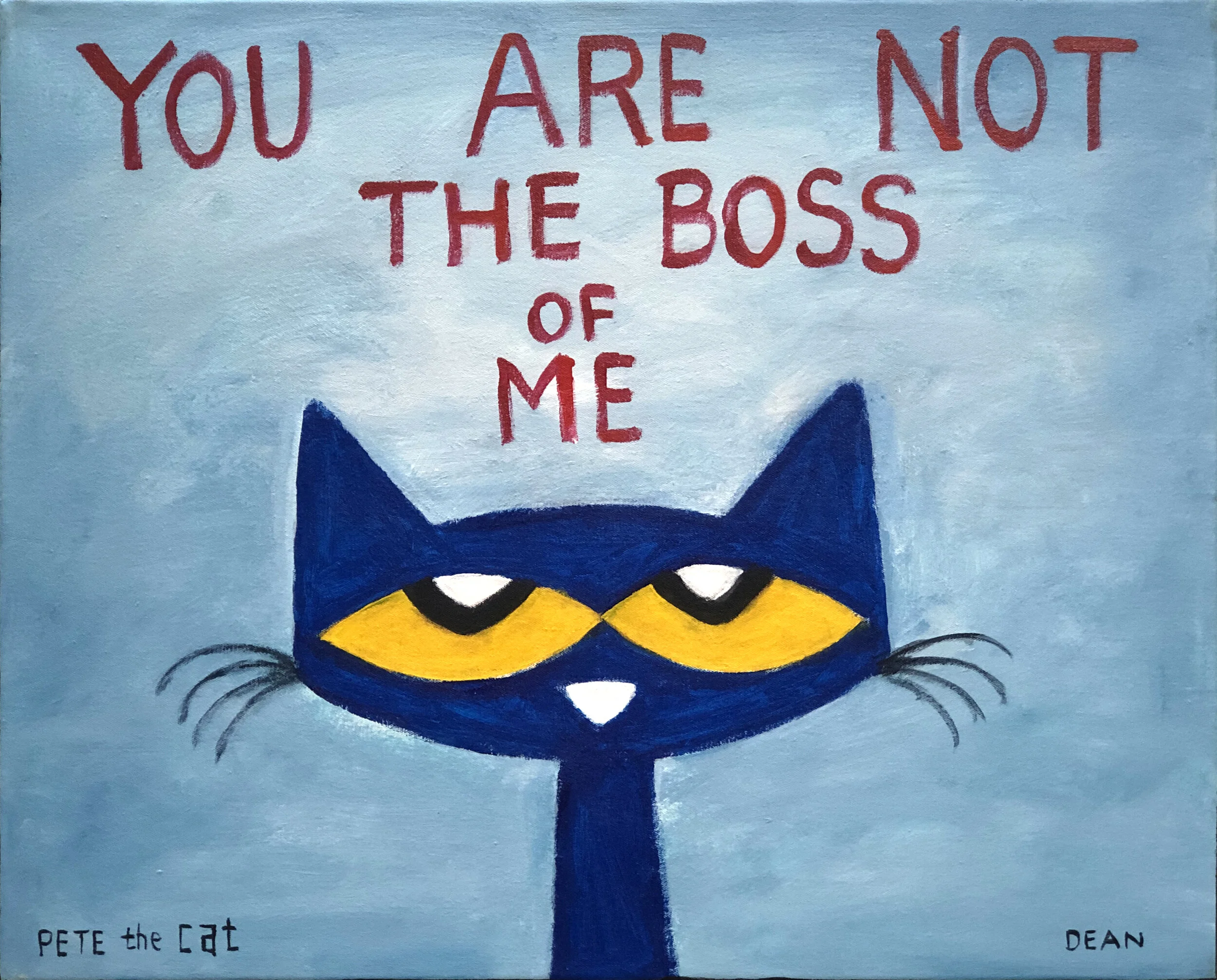 It was during this time that he began creating paintings and drawing of his cat, Pete. The little blue cat showed up as a character in James’s artwork around 1999 and has been a permanent fixture ever since.